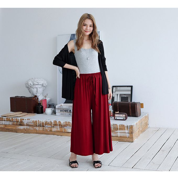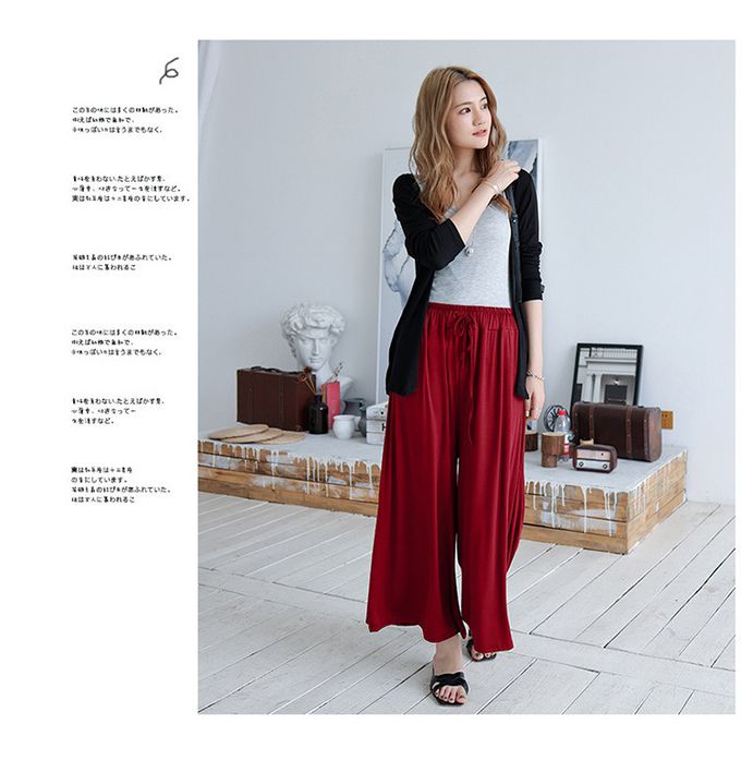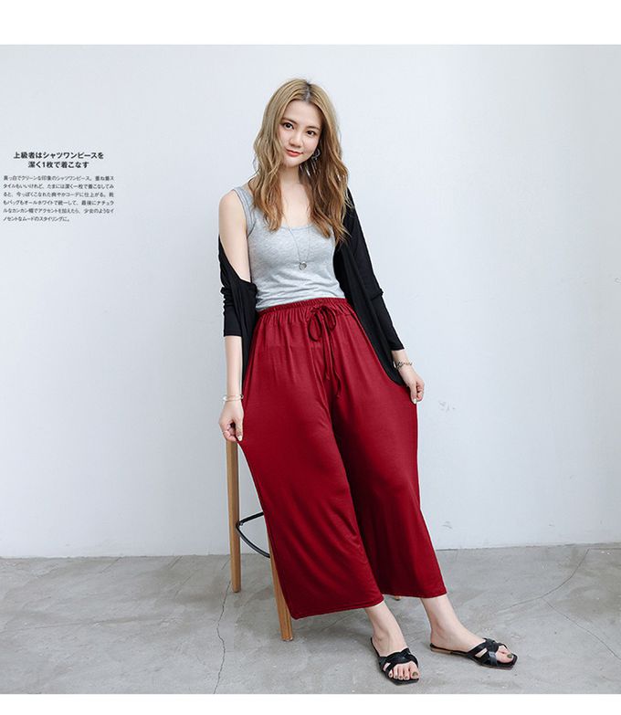 超修飾莫代爾彈力九分褲-酒紅色 (F)