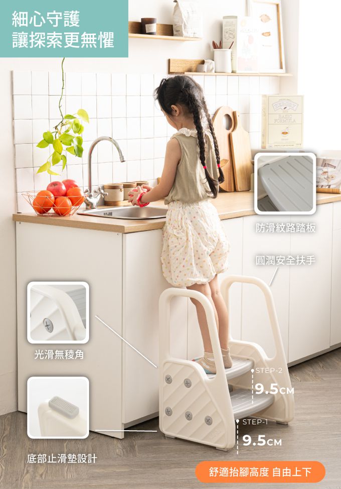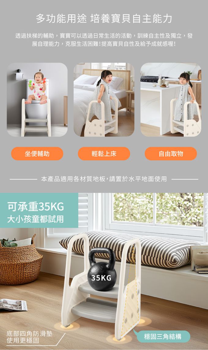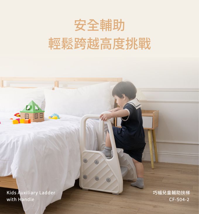 巧福兒童輔助扶梯有多種用途,可輔助孩童自由取物、坐便輔助、方便洗漱、輕鬆上下床...等