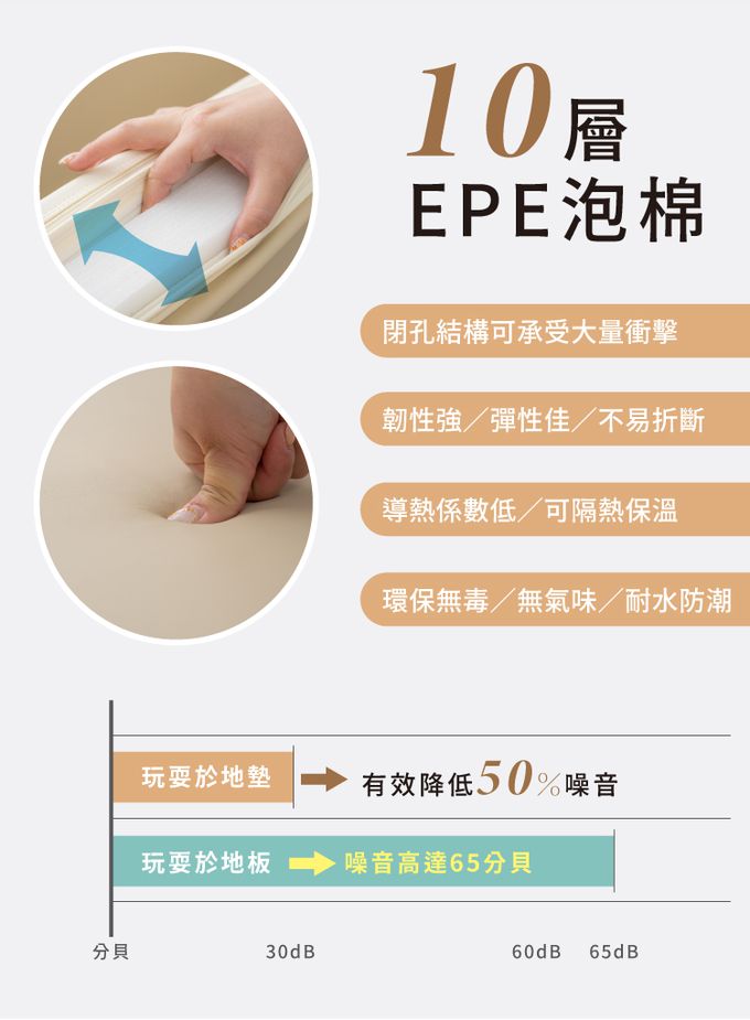 ■5cm厚度,10層高密度EPE,紮實柔軟彈力