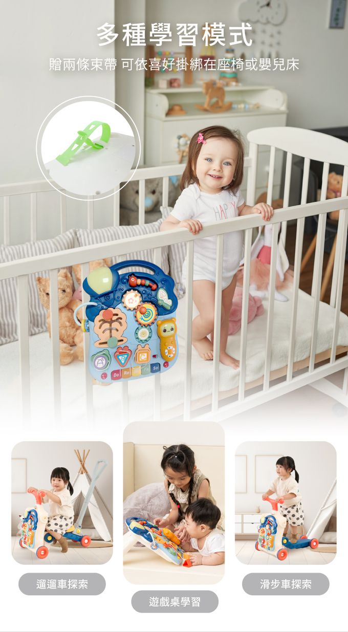■ 可拆式聲光造型遊戲板,可掛嬰兒床,可當遊戲桌
