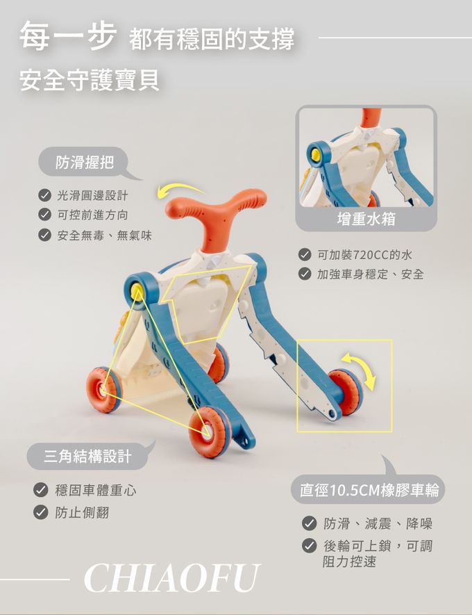 ▲ STEP 5. 滑板車模式:提升寶貝身體控制力、訓練平衡感