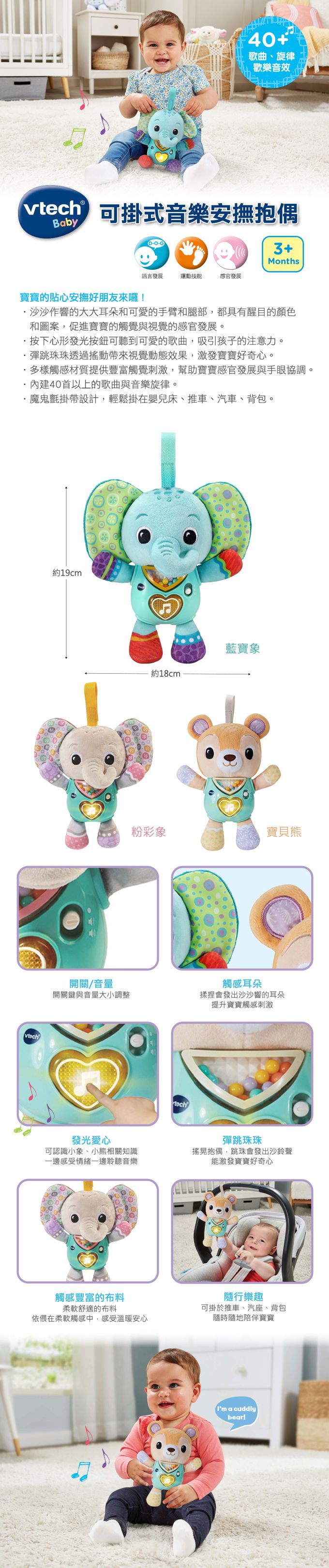 ‧沙沙作響的大大耳朵和可愛的手臂和腿部,都具有醒目的顏色和圖案,促進寶寶的觸覺與視覺的感官發展。