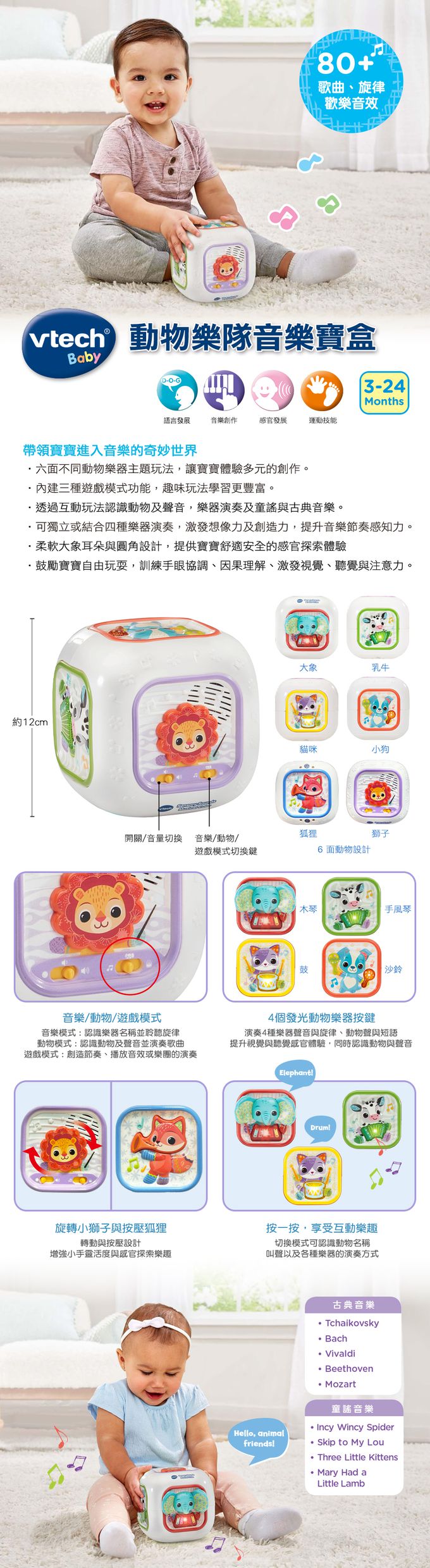 ‧六面不同動物樂器主題玩法,讓寶寶體驗多元的創作。