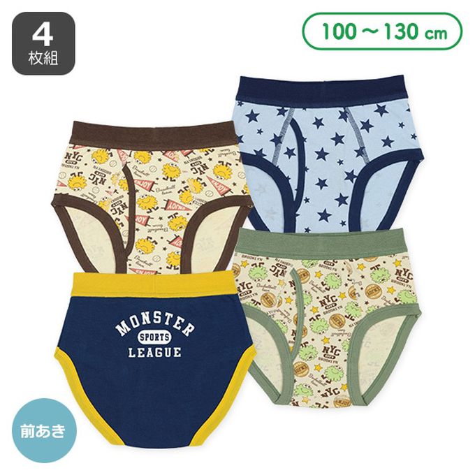 日本西松屋 - 前開式男孩三角內褲(4件組)-小怪物&星星-藍綠棕系