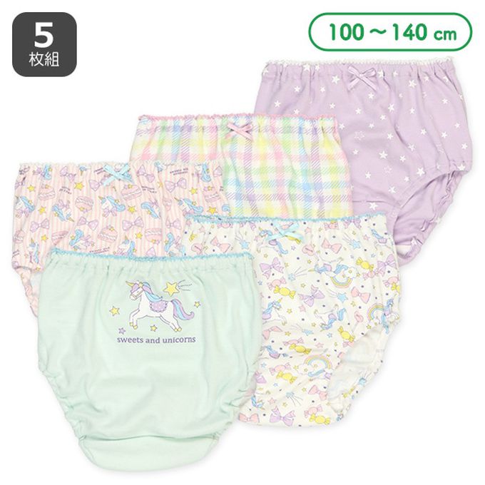 日本西松屋 - 混棉舒適女孩內褲(5件組)-甜蜜獨角獸