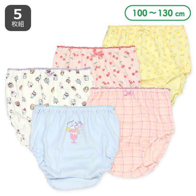 日本西松屋 - 混棉舒適女孩內褲(5件組)-獨角獸&碎花