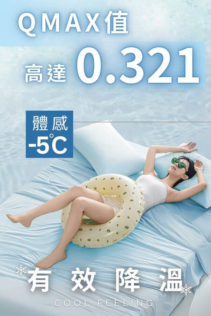 肌膚一接觸立刻感受到涼感紓壓,柔軟不悶熱,晚上睡得更沉穩!