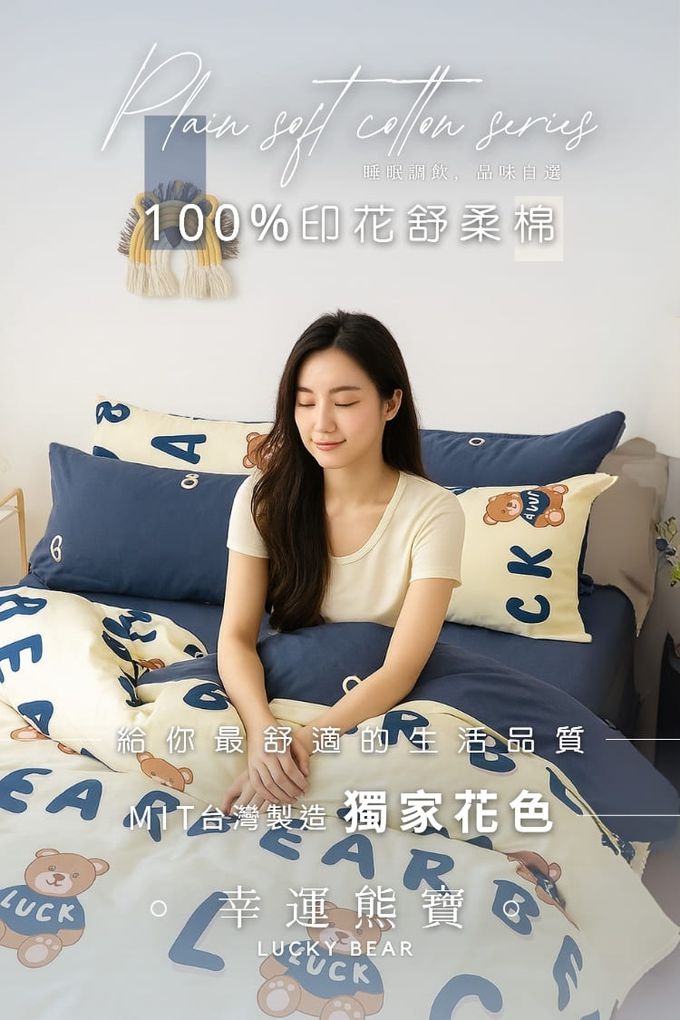 AGAPE雅家倍 - MIT舒柔棉薄床包被套組-幸運熊寶