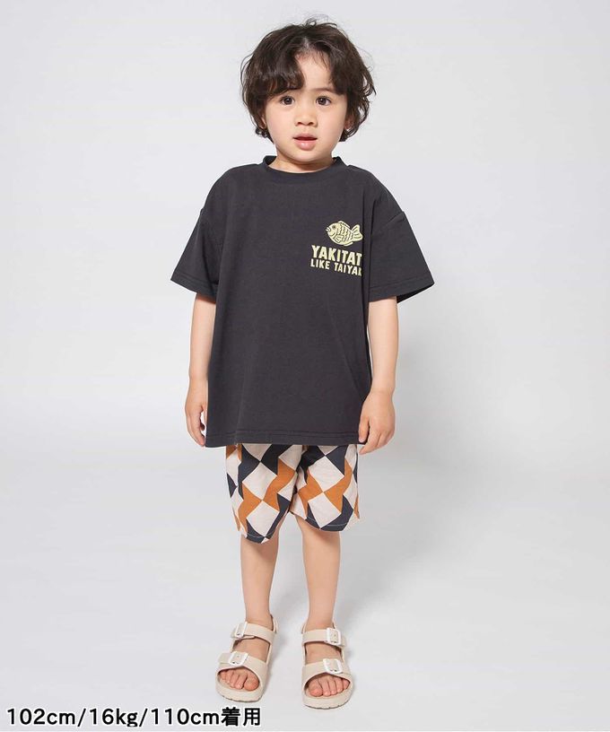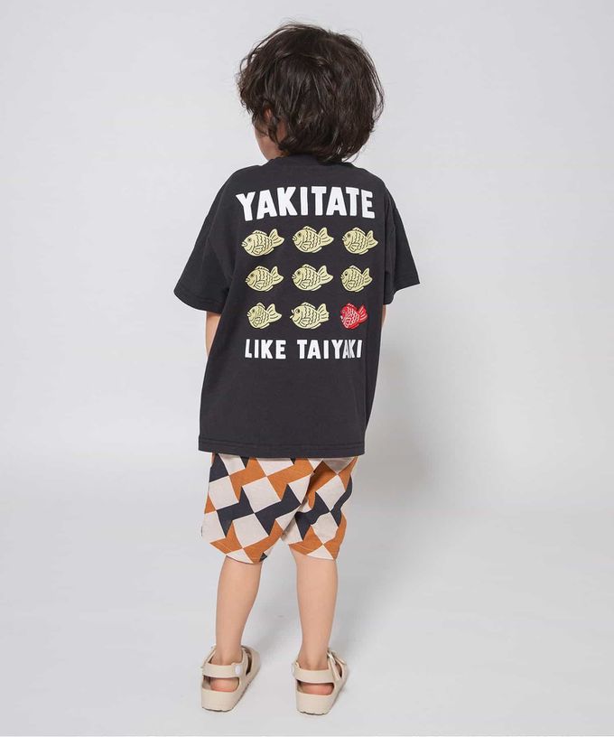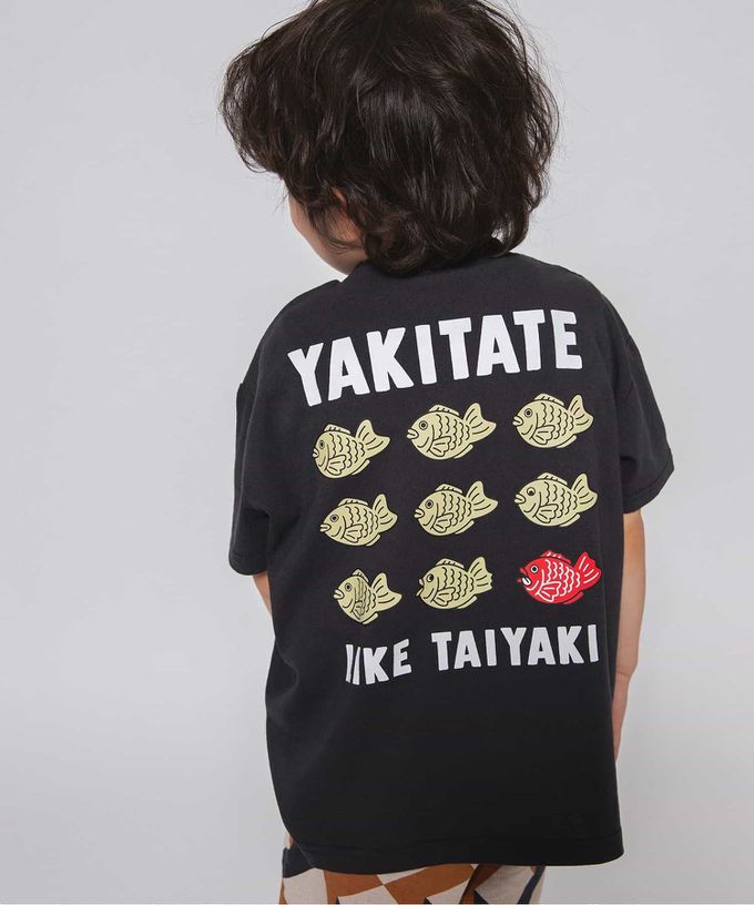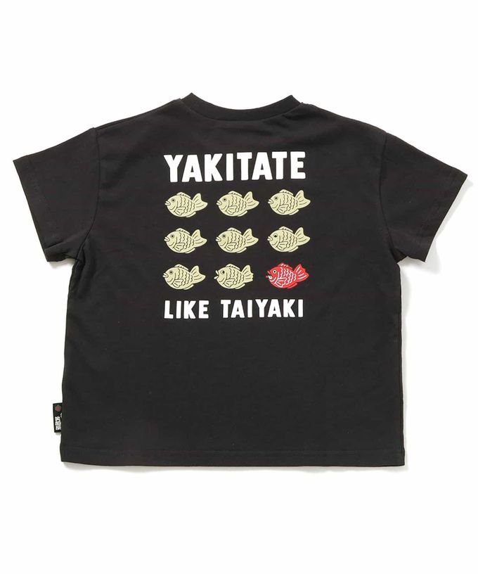 日本 BREEZE - 100%棉 日式印花落肩短袖上衣-鯛魚燒-黑