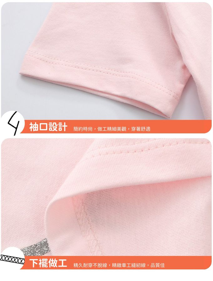 棉質圓領短袖上衣-花卉獨角獸-粉色