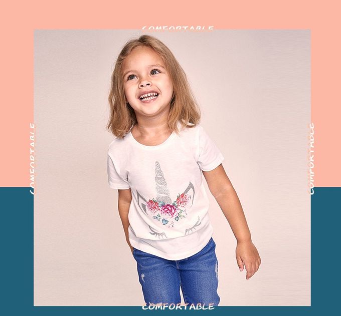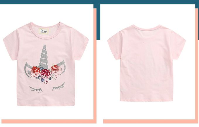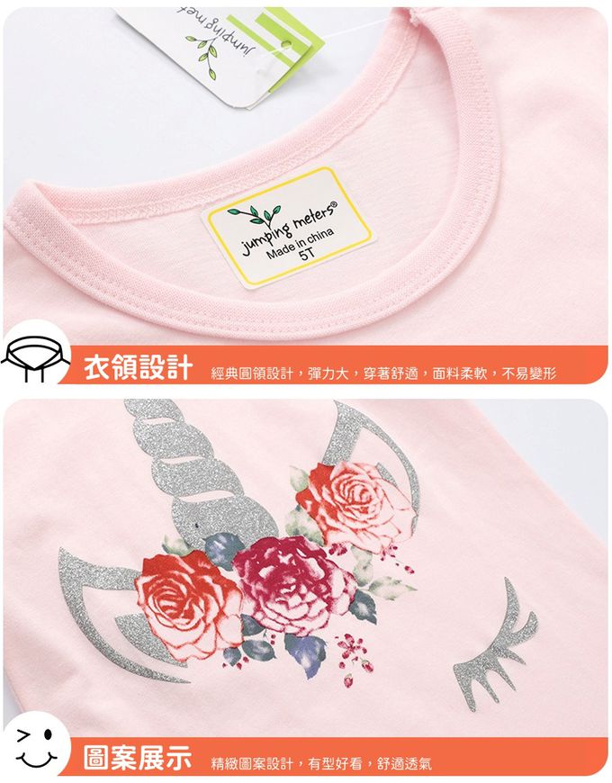 Jumping meters - 棉質圓領短袖上衣-閃耀翅膀獨角獸-粉色