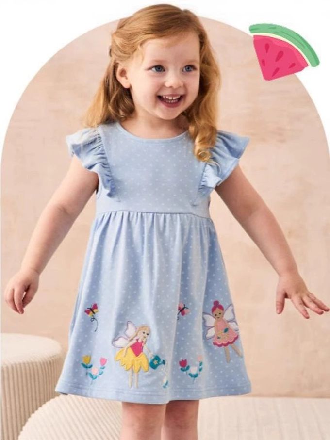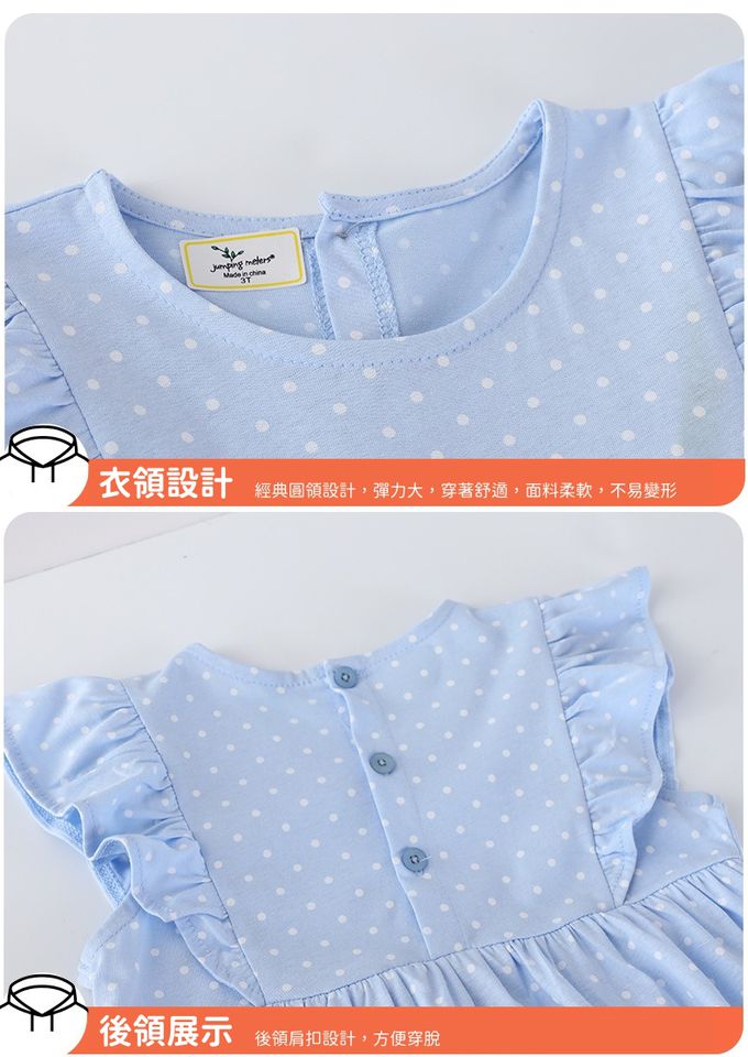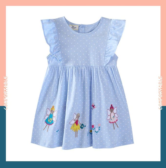 棉質圓領小飛袖洋裝-蝴蝶仙子-藍色點點