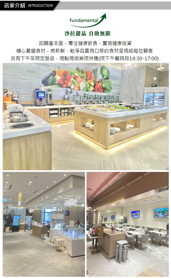 1.單張可1人於《Fundamental》享平日全時段自助吃到飽乙客及冰淇淋一支。(已含服務費)
