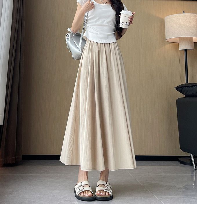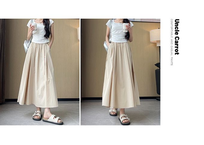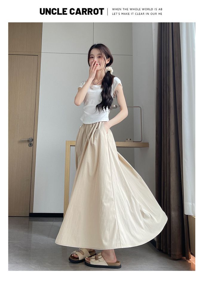 Lusairé - 冰絲涼感瘦瘦裙-有口袋(可選長度)-溫柔杏