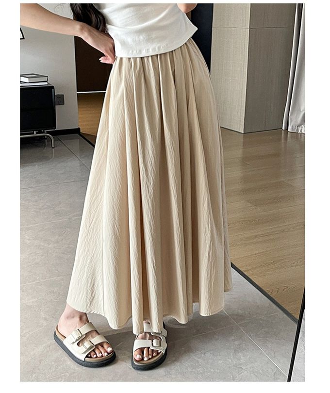 冰絲涼感瘦瘦裙-有口袋(可選長度)-溫柔杏