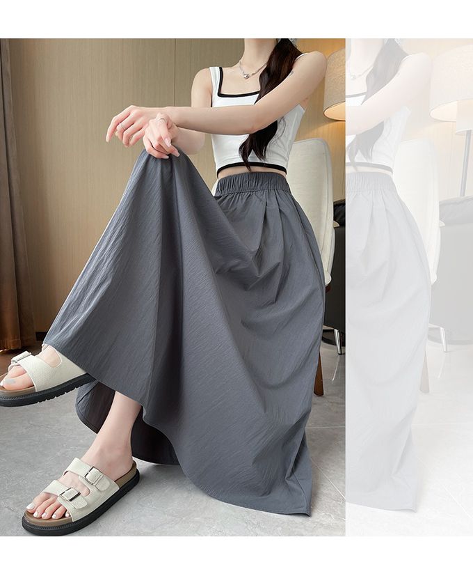 Lusairé - 冰絲涼感瘦瘦裙-有口袋(可選長度)-沈穩灰