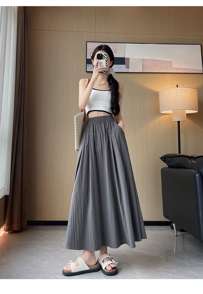 冰絲涼感瘦瘦裙-有口袋(可選長度)-沈穩灰