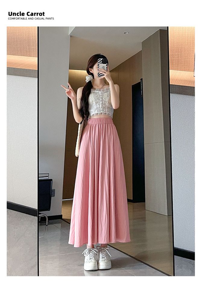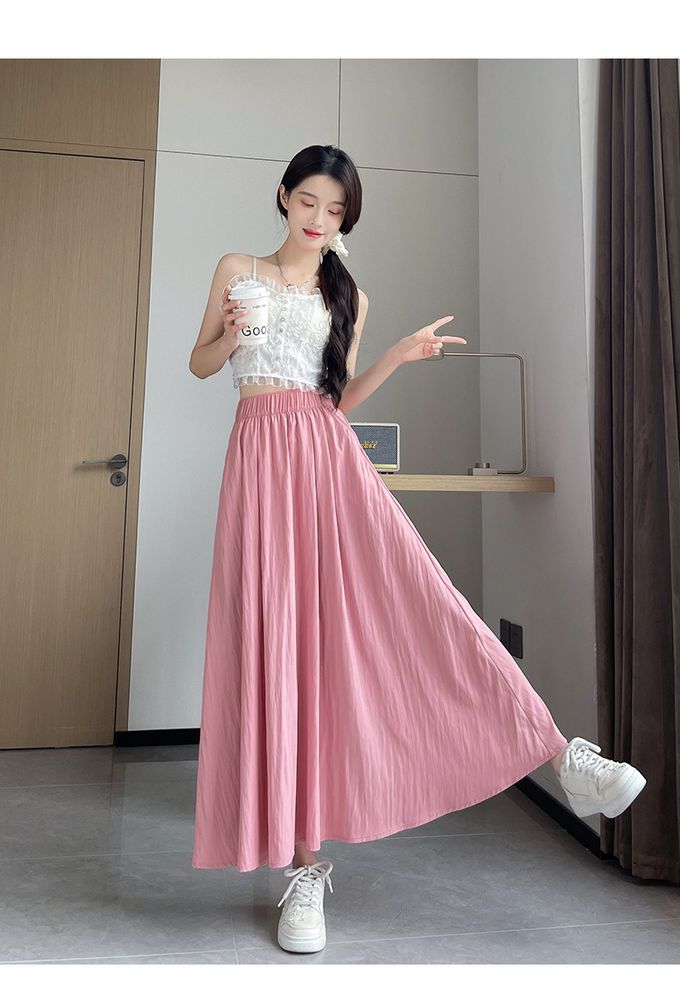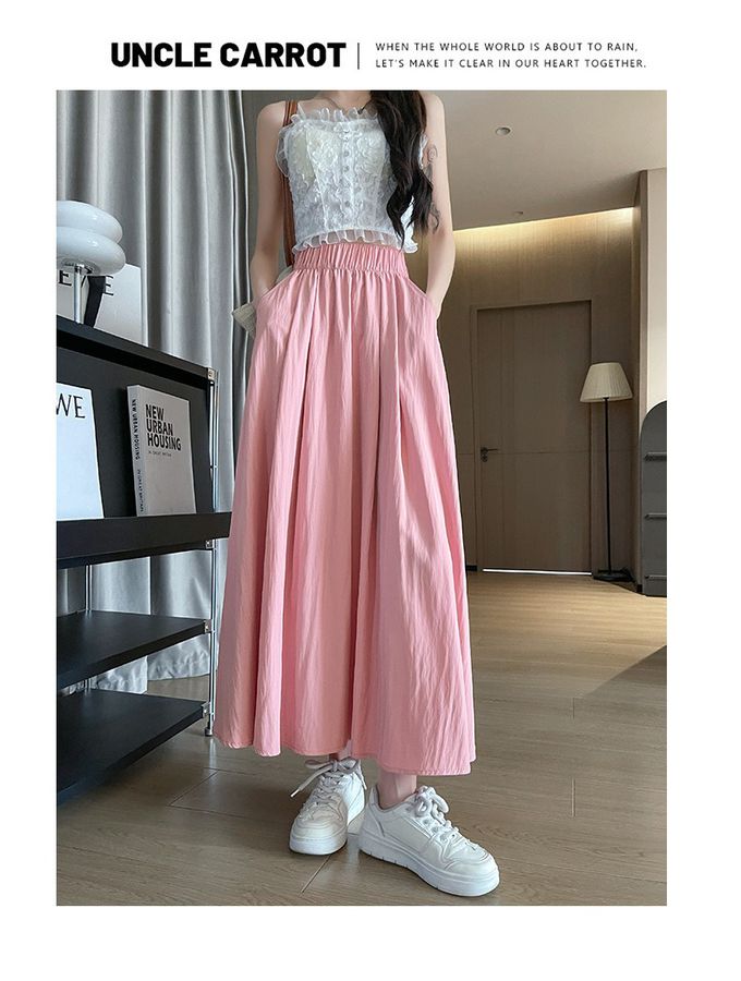 冰絲涼感瘦瘦裙-有口袋(可選長度)-甜美粉