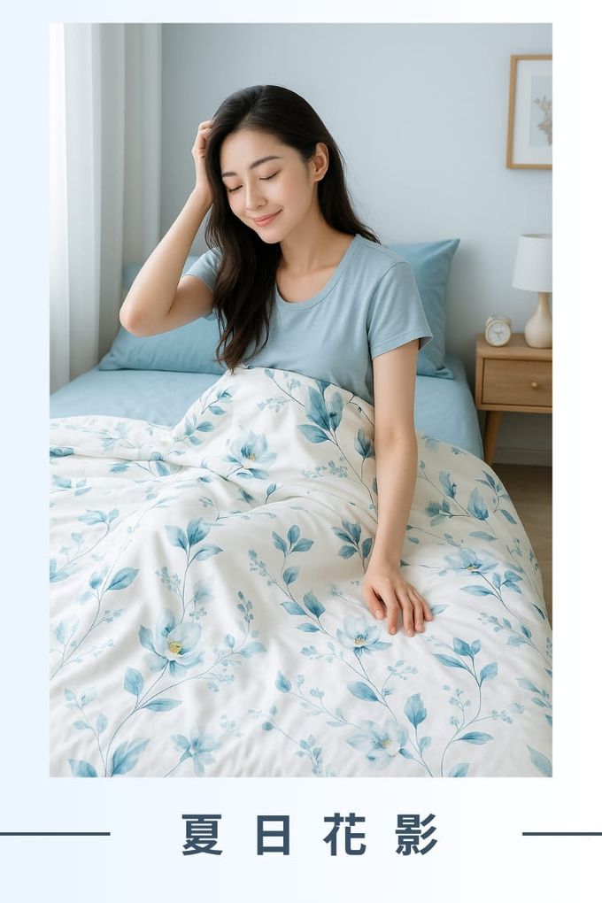 天冰被輕盈透氣,觸感冰涼,六款清新花色任你挑選,無論單人還是雙人床都完美搭配。