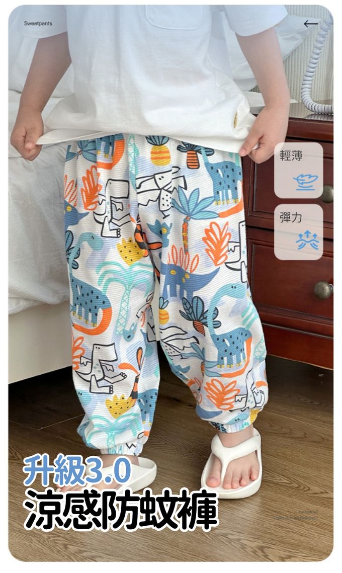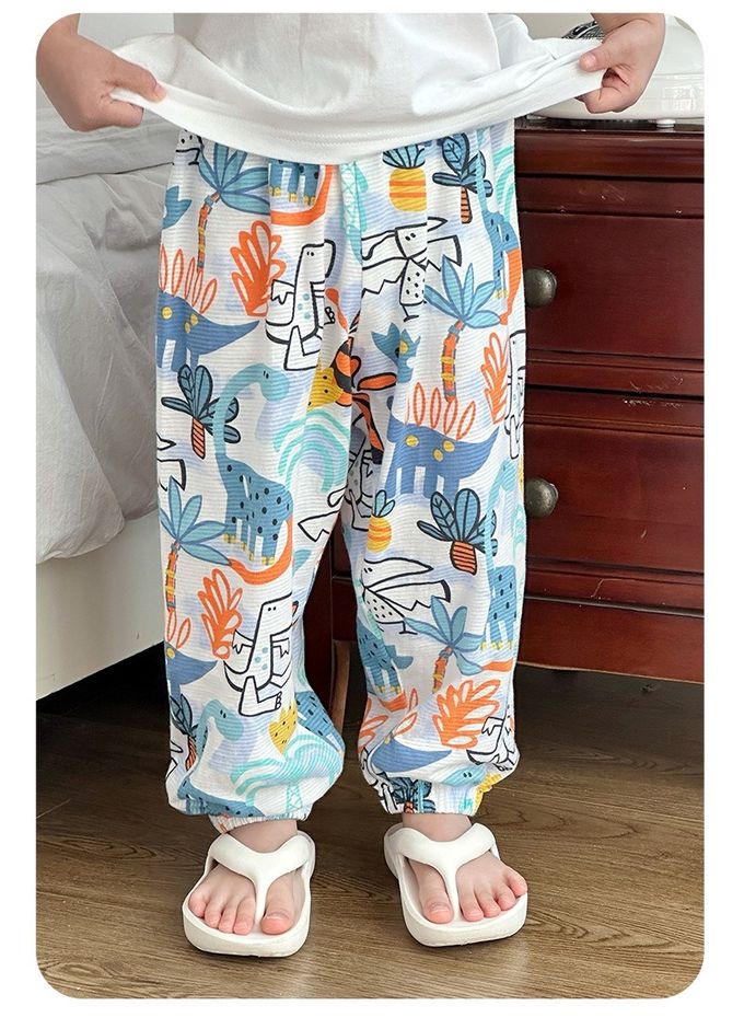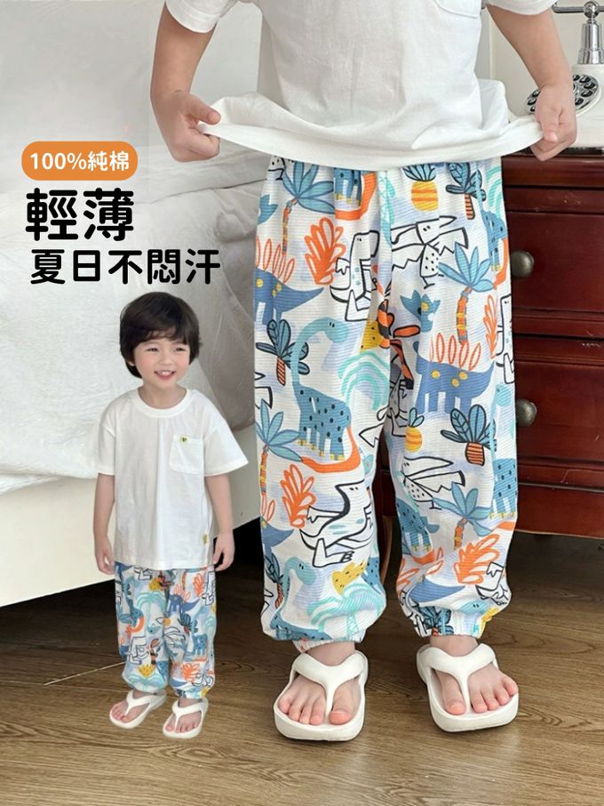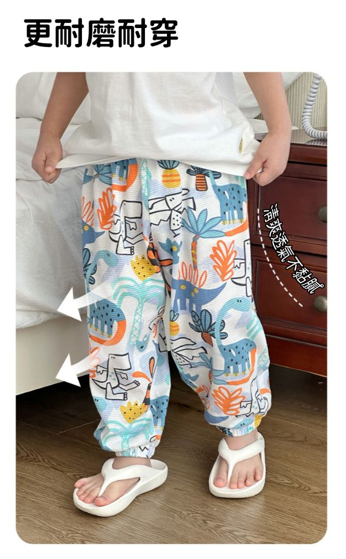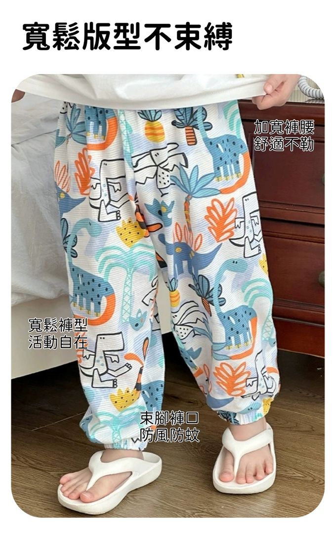 NC - 純棉涼感輕薄透氣防蚊褲-童趣恐龍-象牙白