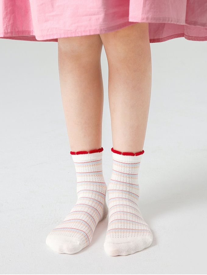 可愛粉紅兔蝴蝶結網眼短筒棉襪-5 雙一組