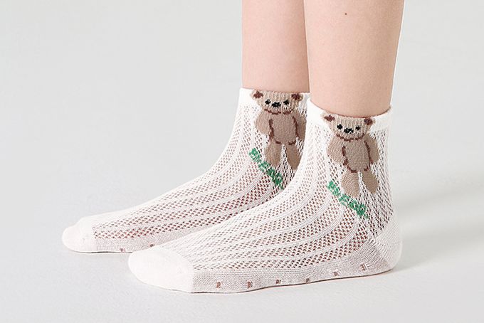 元氣小狗小熊網眼短筒棉襪-5 雙一組