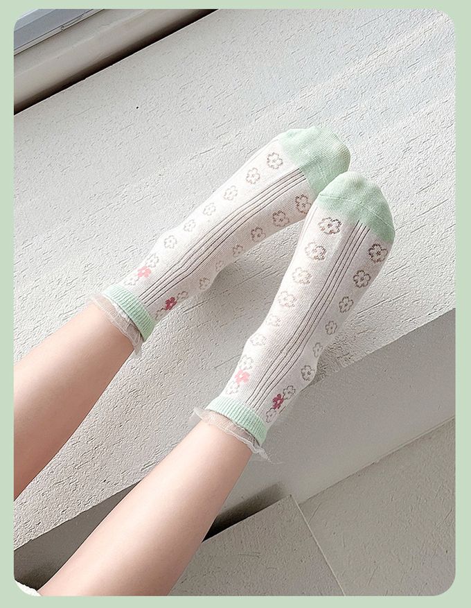 品名:盛夏花園清新花朵甜美荷葉邊透氣短筒棉襪