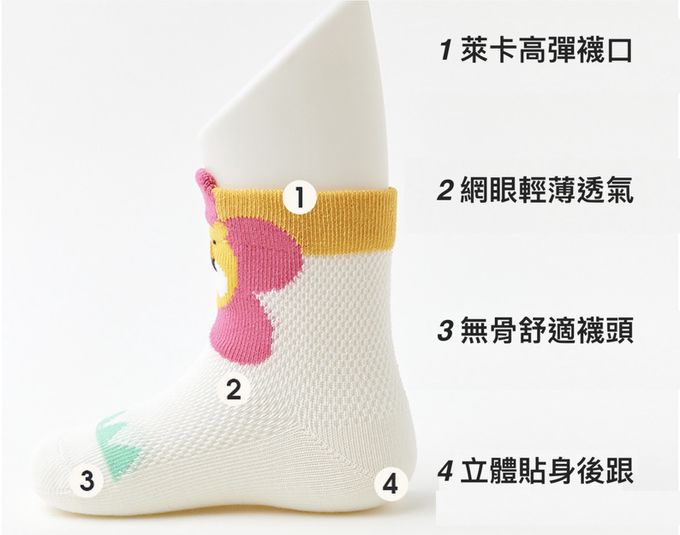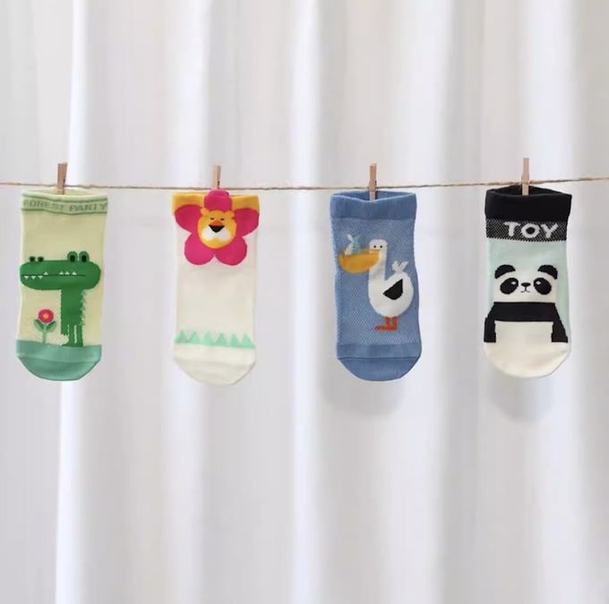 卡通動物世界短筒網眼棉襪-4 雙一組