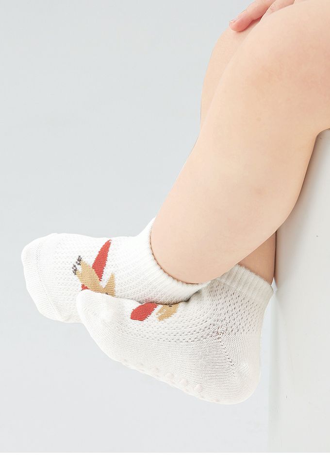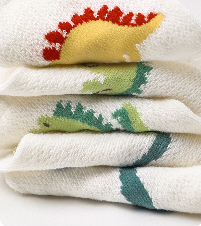恐龍世紀網眼防滑點膠船型棉襪-5 雙一組