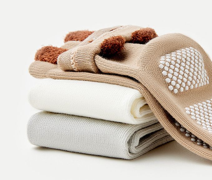 立體毛毛耳朵小動物無骨點膠防滑短筒襪-3 雙一組