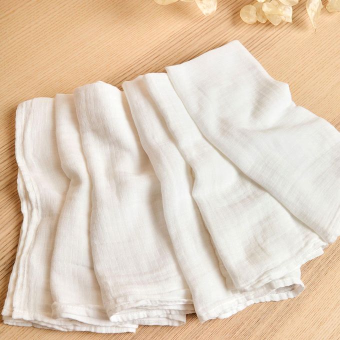 英國 JoJo Maman BeBe - 100% 純棉多功能細紗布方巾/包巾/小薄被/拍嗝巾/安撫巾 6入禮盒組(60*60cm)-純白