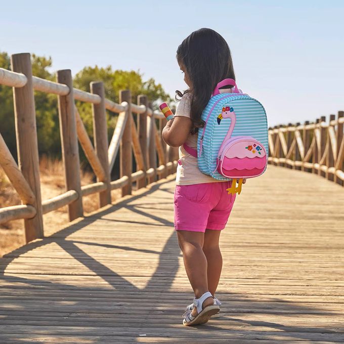 英國 JoJo Maman BeBe - 幼稚園/大童防潑水後背包 學生包 旅行包-火烈鳥