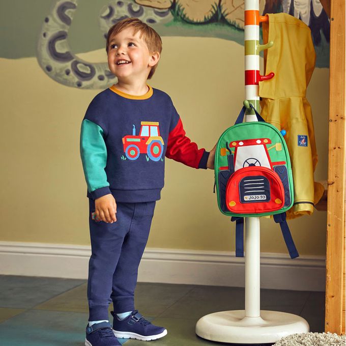 英國 JoJo Maman BeBe - 幼稚園/大童防潑水後背包 學生包 旅行包-紅色車車