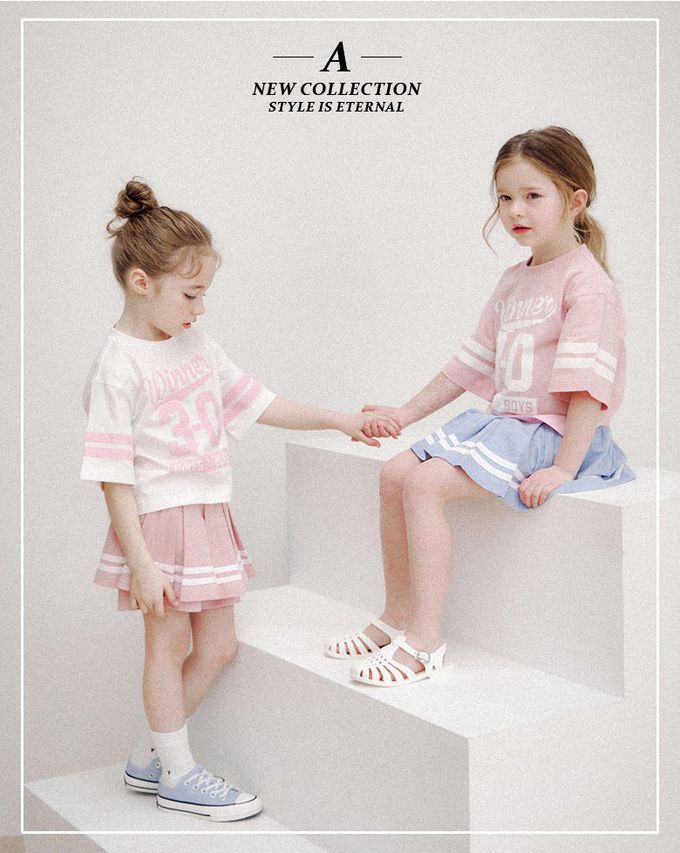 • 品名:美式字印短袖上衣X百褶褲裙套裝