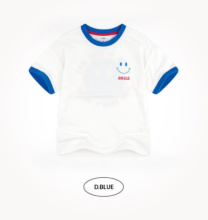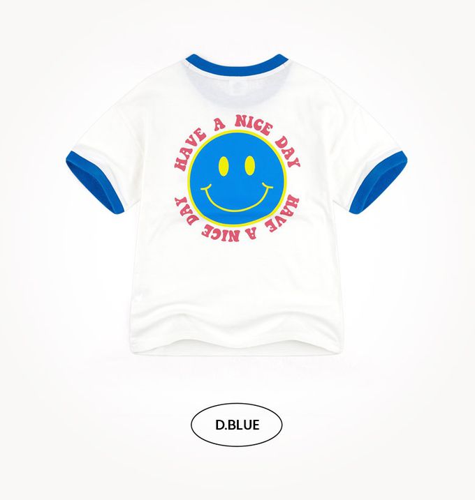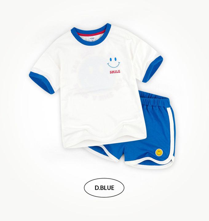 韓國 AndiApple - 笑臉圖案純棉短袖套裝-藍
