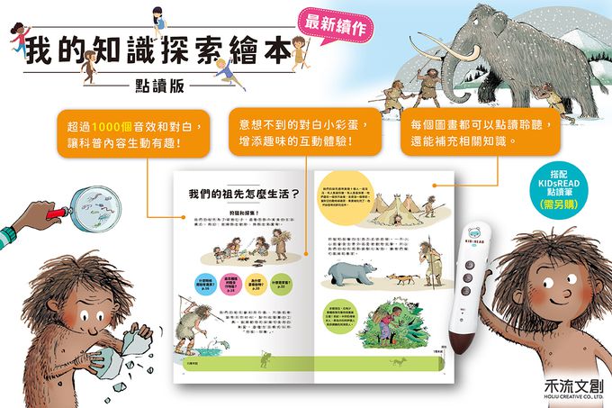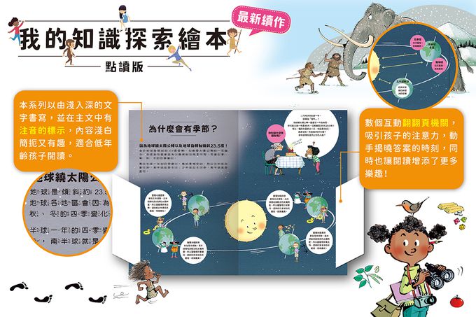 很喜歡在每一篇第一頁都是從一個問句開始,像是「為什麼有季節?」「我們的祖先怎麼生活?」這些問題就像是扉扉內心的好奇想法被作者寫出來,而她也會拿起點讀筆一頁頁的點讀,尋找她想知道的答案。