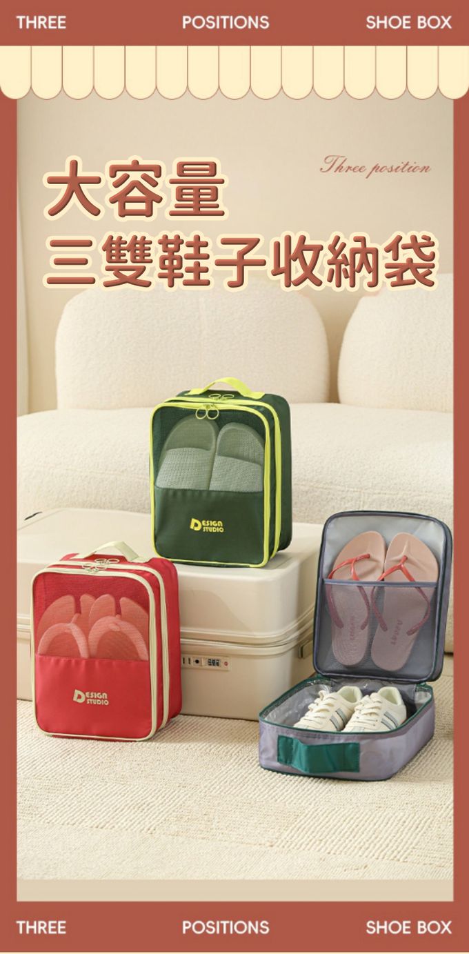 品名:三雙大容量鞋子收納袋(行李箱可掛)