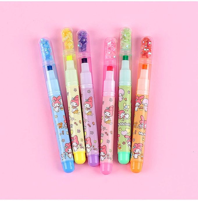 韓國文具連線 - 星星形狀筆頭6色螢光筆-卡通人物美樂蒂