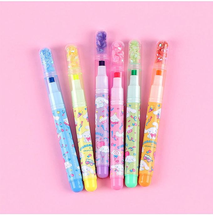 韓國文具連線 - 星星形狀筆頭6色螢光筆-卡通人物大耳狗