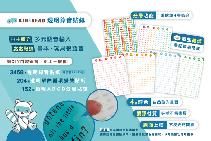 KIDsREAD - 透明錄音貼紙3468張【貼紙號碼15153~18620】