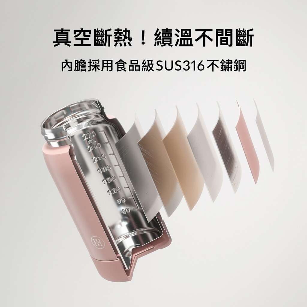 • 內膽採用食品級SUS316不鏽鋼,真空斷熱