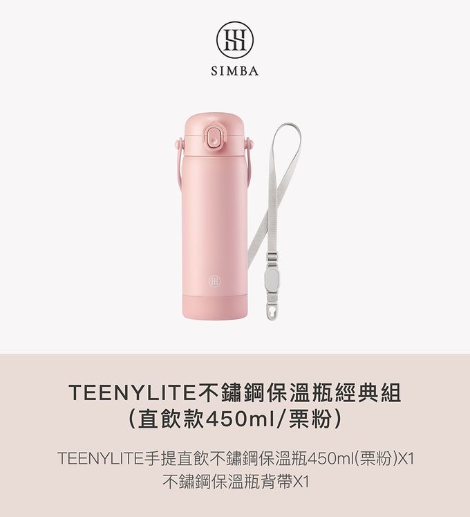 Simba 小獅王辛巴 - TEENYLITE不鏽鋼保溫瓶經典組-栗粉-直飲款450ml