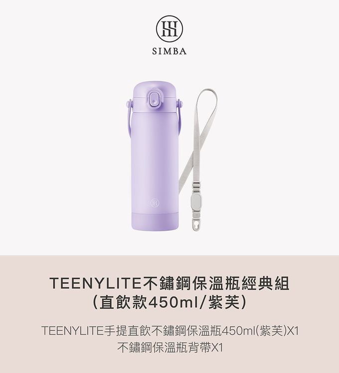 Simba 小獅王辛巴 - TEENYLITE不鏽鋼保溫瓶經典組-紫芙-直飲款450ml