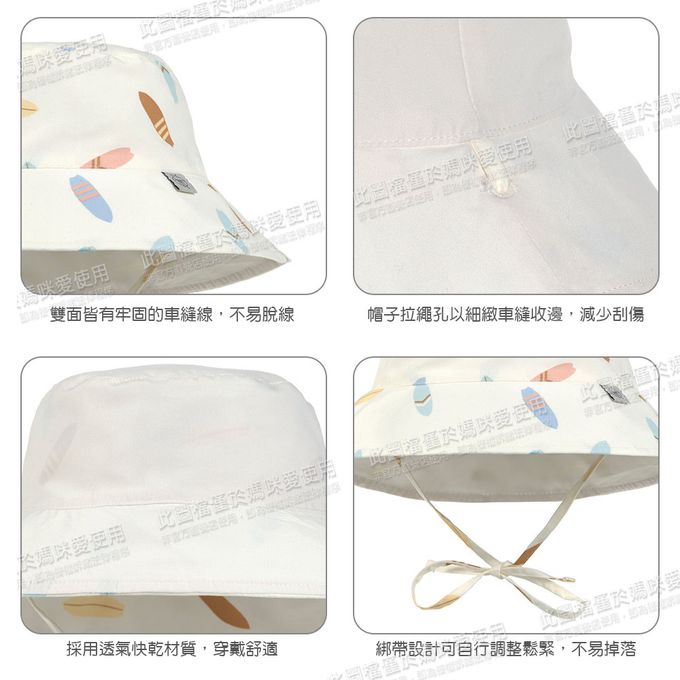 材質舒適易乾,柔軟不硬,圖案可愛顯眼,孩子戴帽子的意願增加了!