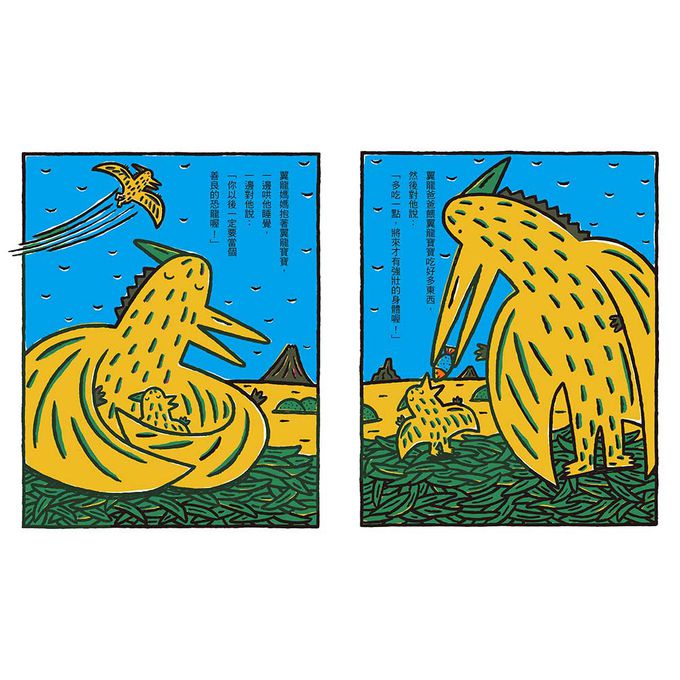 本書最適合推薦作為親子共讀的入門繪本,這個故事,不僅僅是文字語言的傳遞;圖像語言更是充滿了趣味,又不失生活性。我們都想要像翼龍爸爸一樣教會孩子生存的本領,也想要像翼龍媽媽一樣告誡孩子做人的道理,期望他們有著堅強的意志,和一顆溫柔的心去體驗世界,卻發現很多事情是大人想教也教不來的。經由閱讀宮西達也的作品,解讀其中所蘊藏的豐富繪畫語彙,親子間可以輕鬆地延伸讀圖的樂趣,孩子也在潛移默化中,體驗了小翼龍的成長並產生共鳴,這就是親子共讀繪本的力量,更是成效驚人的親子溝通手法。