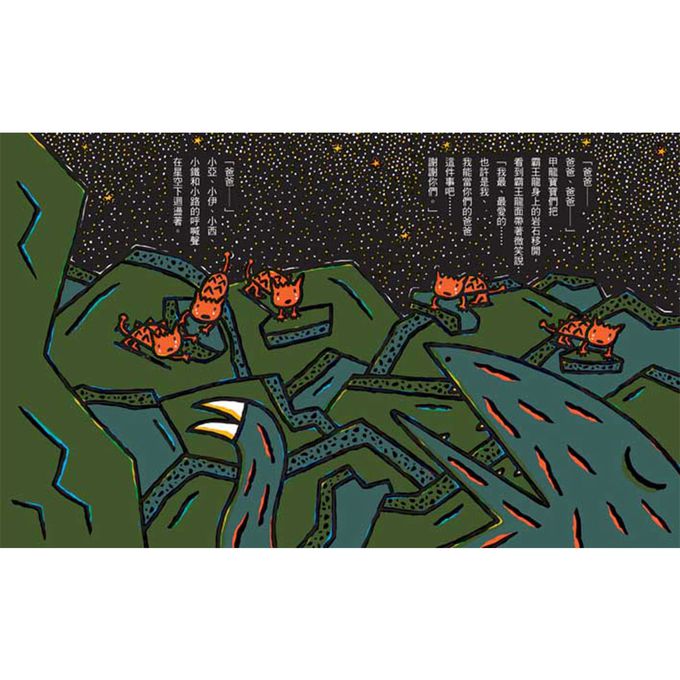 書中描繪五隻甲龍寶寶因「誰才是最愛」而爭執、忌妒,甚至導致誤會與危機,但最終透過父愛與行動解開誤會,讓孩子看見「每個孩子都是獨一無二的寶貝」。這樣的情節設計不僅反映現實家庭常見的情緒糾葛,也提供親子間深入對話的機會,是一本適合家庭共讀、引導情緒與愛的教育繪本。