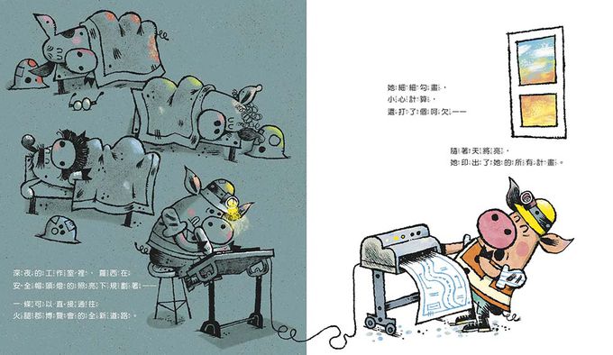 「插圖充滿了歡鬧的修路場面,與文中許多文句相得益彰。這是一個關於團隊合作、充滿活力的故事,一定會讓孩子們開心閱讀並產生共鳴。」 ——書單