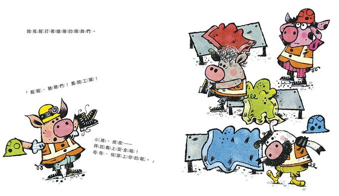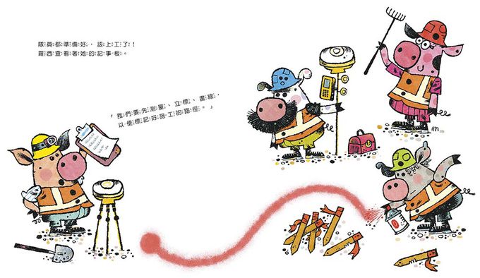 本書特別強調「合作」不只是同時做一件事,而是確認細節、分工與配合的過程。當豬豬們終於意識到問題,願意停下來協助彼此、重新規劃工作,他們的工程才終於順利完成。這樣的轉折,不只增加故事張力,也能讓孩子認知到「按部就班」與「團隊策略」的力量。