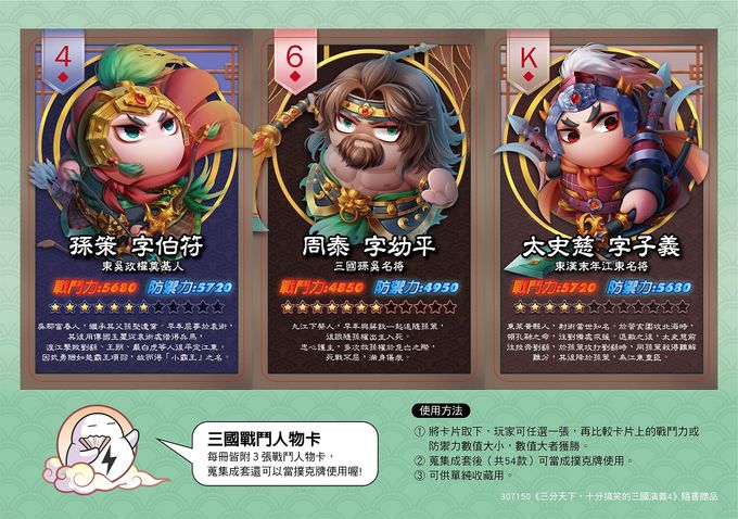 *每冊皆附三國戰鬥人物卡(3張),蒐集成套還可以當撲克牌使用喔!