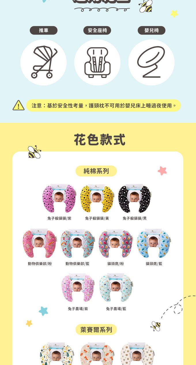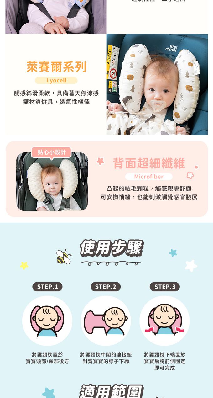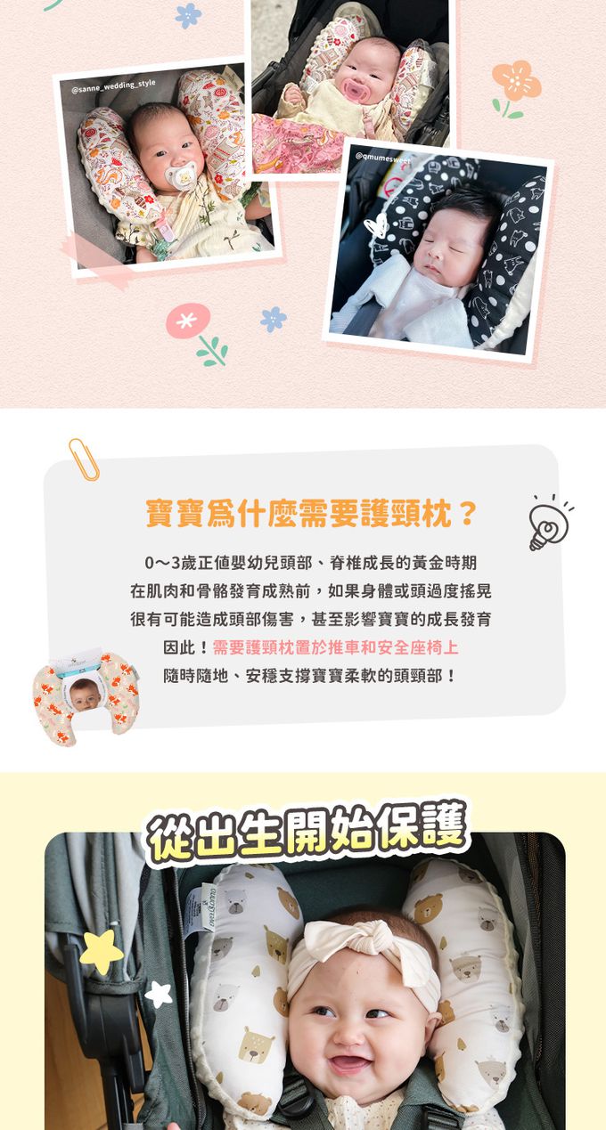 讓寶寶的頭/頸部,能舒適依靠在護頸枕內側,